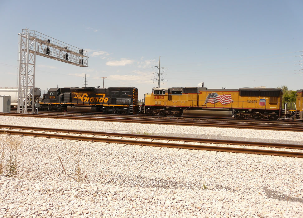 At this point a crewman walked back from the lead unit and shut down 5371. Though you can't see him he is in the cab of the second UP unit. Next