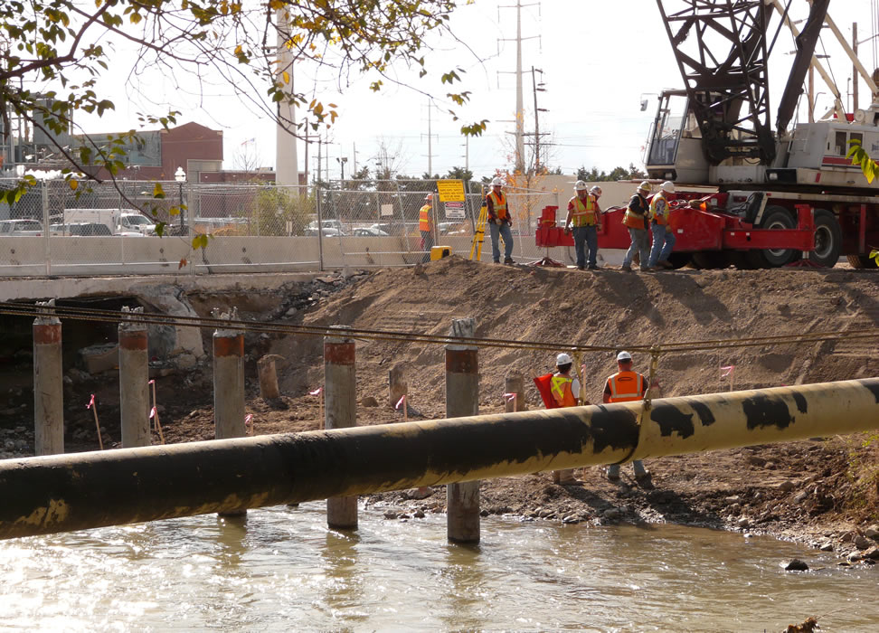 Shown is greater bridge detail. TRAX will pass over these pilings.