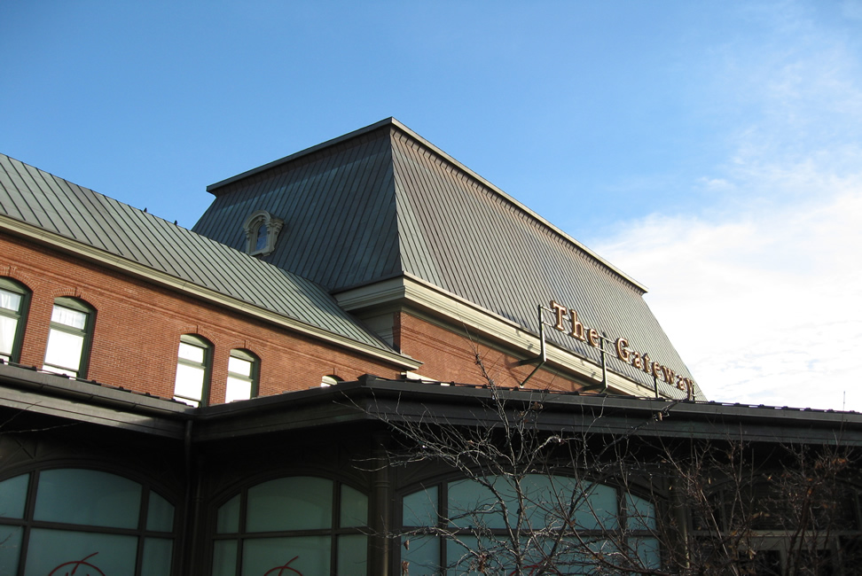 This is a shot from the northwest. Some of the Gateway shopping district buildings around it have been given a bit of a French appearance to allow the old station to blend in. Return