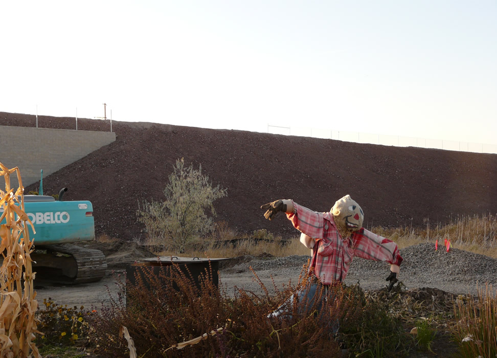 Halloween leftover, or is this the contractor supervisor directing traffic?