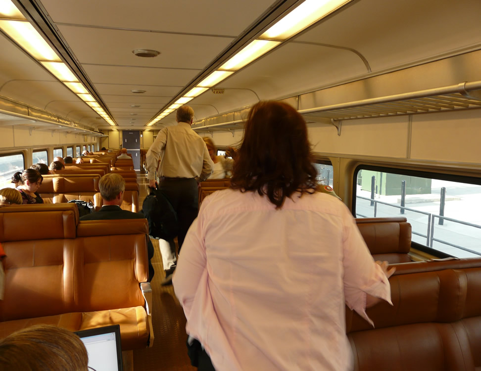 I caught up with a Comet containing Frontrunner consist on 9/23/2008. We are facing north in the comet, right behind the locomotive. Three Bombardiers are behind us. We are preparing to leave Salt Lake Central, in pull mode, to go to Ogden. Does it look very different from when it was on NJT? Next