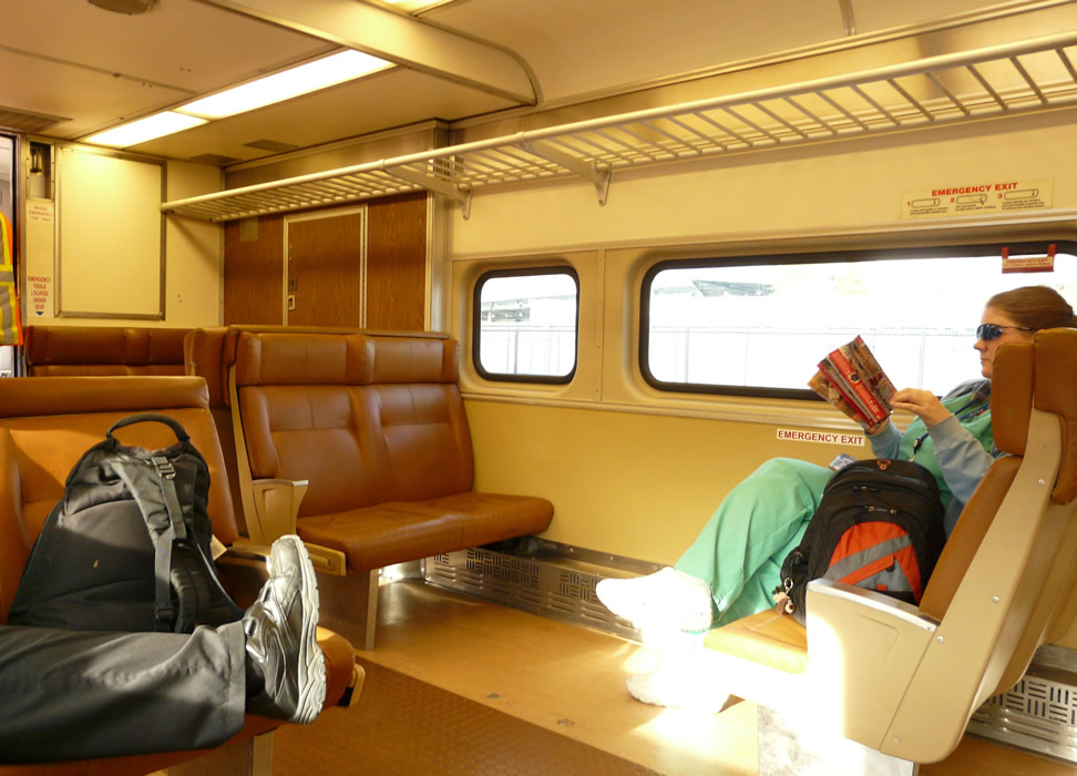 Passengers relaxing as we head north - and the ride is superb! The trucks were completely rebuilt. Next