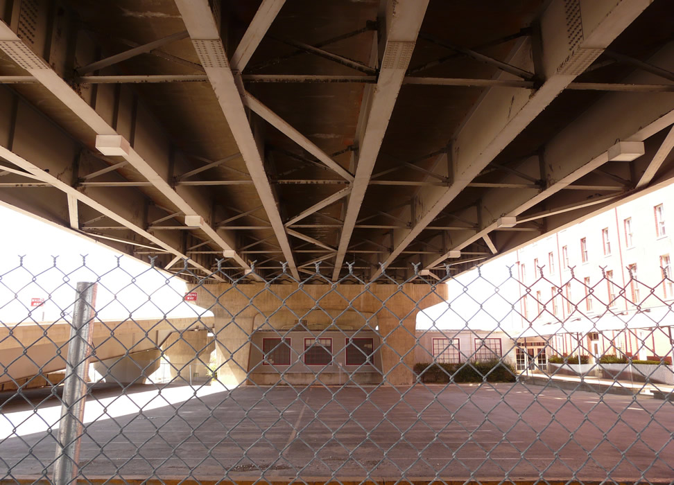 Looking straight west under current structure - 35 years old. Interesting geometry.