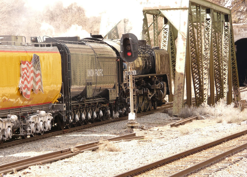Here I changed my camera angle to point west as the 844 and consist proceeded through the twin Pratt truss bridges. Left hand running here in Weber Canyon. More