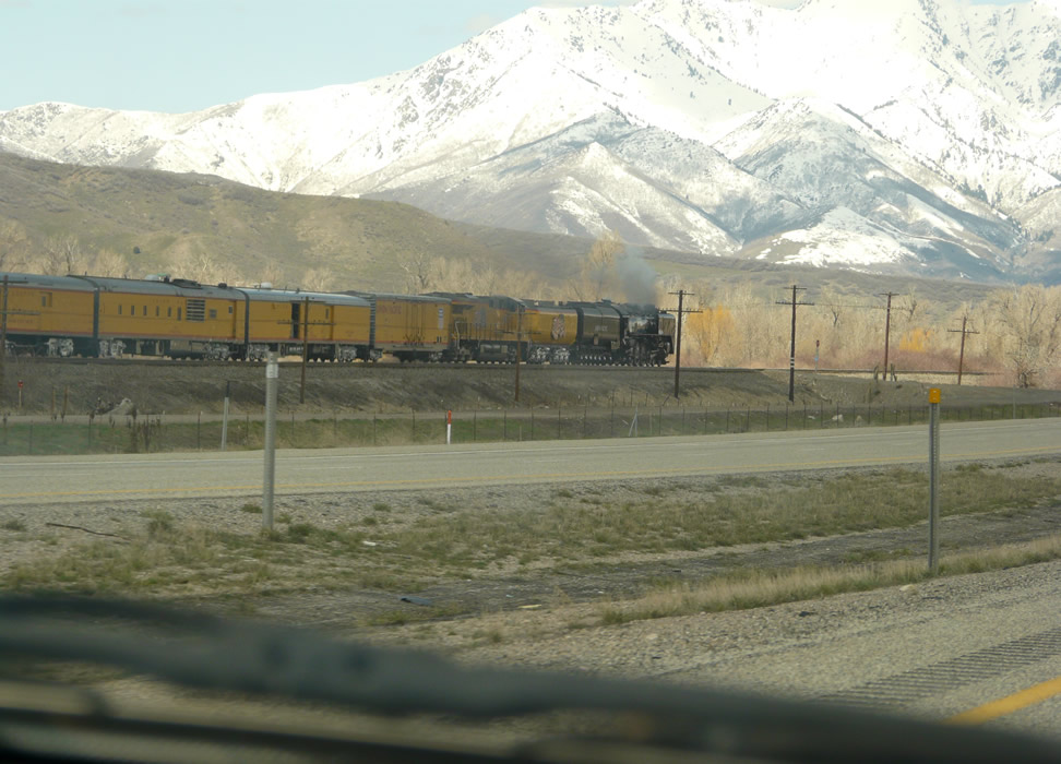 We chase the 844 across Morgan Valley and get this shot of the consist and the east side of the Wasatach Range.
