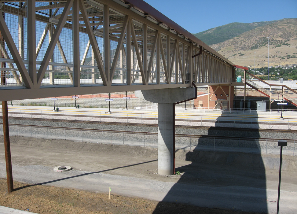 Here is the bridge between the two towers. The two closest tracks with dark ballast are the UP main (a no show during my visit). Next