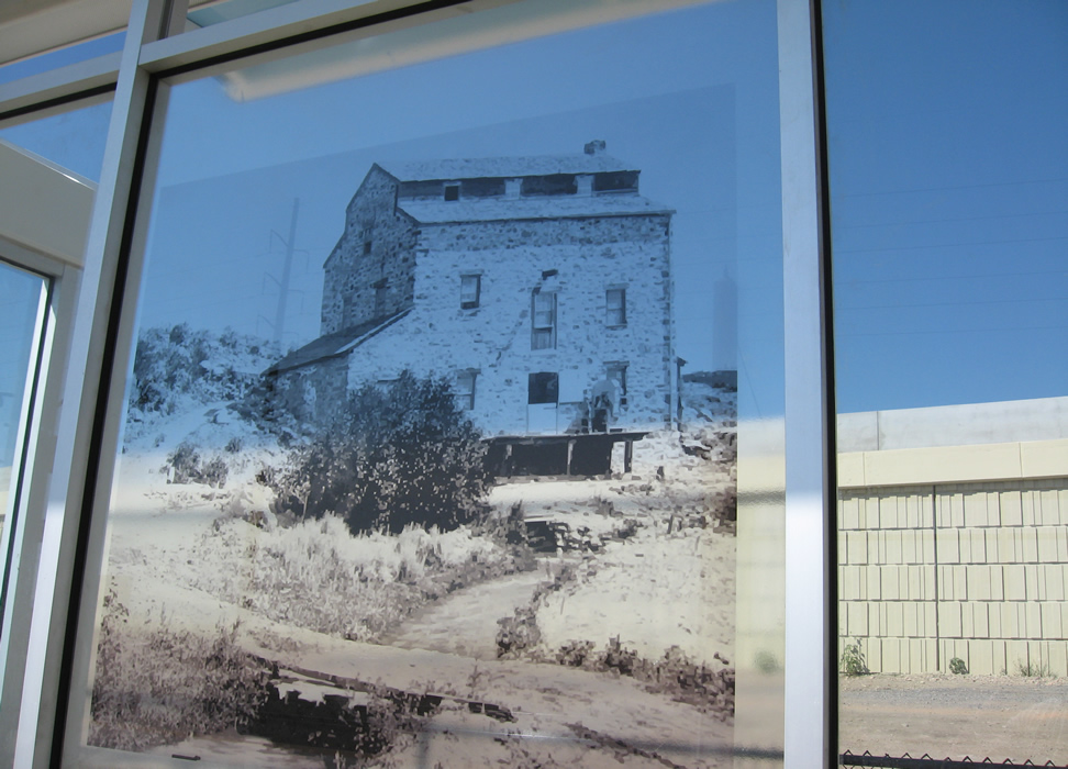 Here is one of the historic glass murals in evidence on the platforms (early Farmington Canyon grist mill). Next