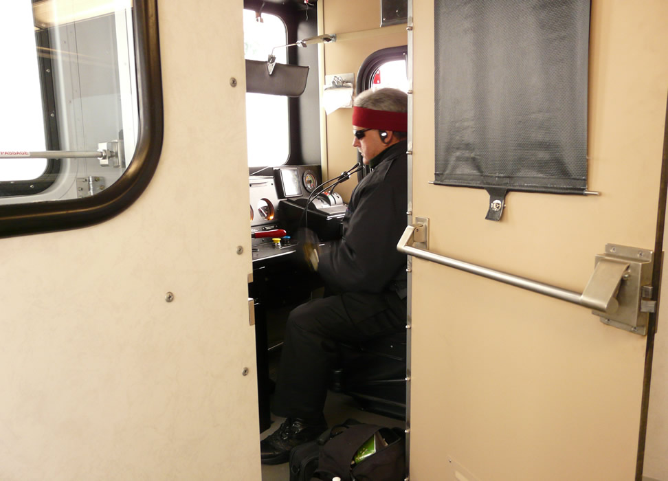 When we stop at Ogden (only one train each day goes on to Pleasant View), I retreat to the last Bombardier for our push mode trip back to Salt Lake Central. Here our engineer prepares to depart. Next