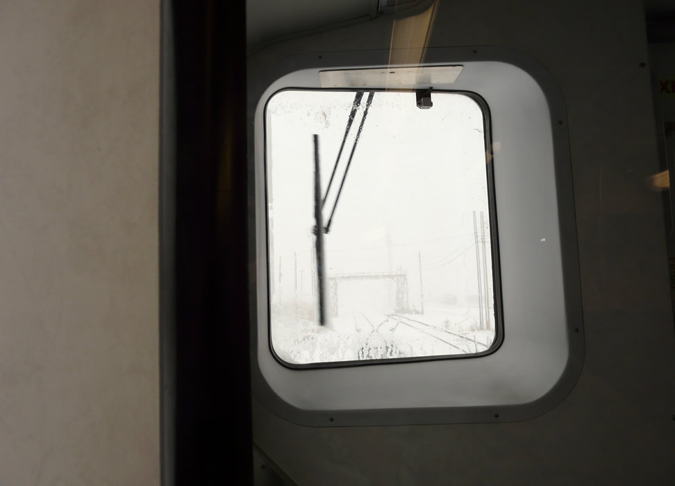 We approach a pedestrian bridge in North Yard in near whiteout. No slow orders are in evidence however. Next