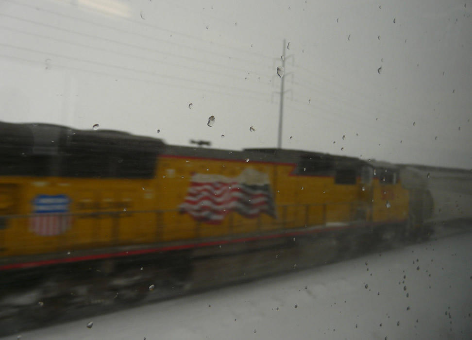 We pass a southbound UP freight at speed (closing speed 120 mph).