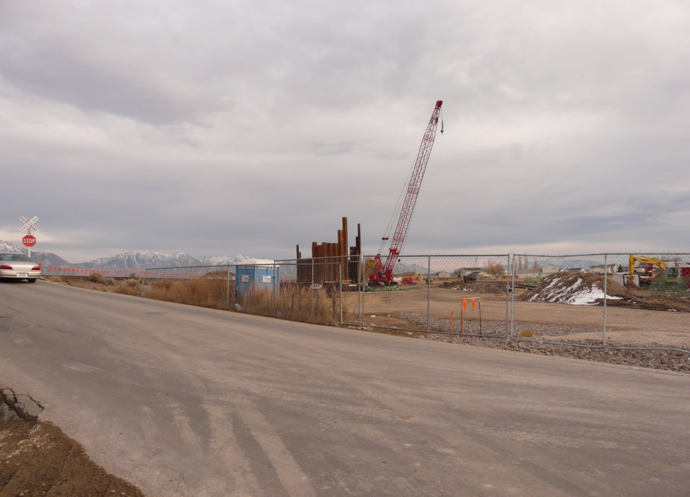 Looking south near Thanksgiving Point, beginning construction for Frontrunner/UP overpass over this very dangerous grade crossing. Next