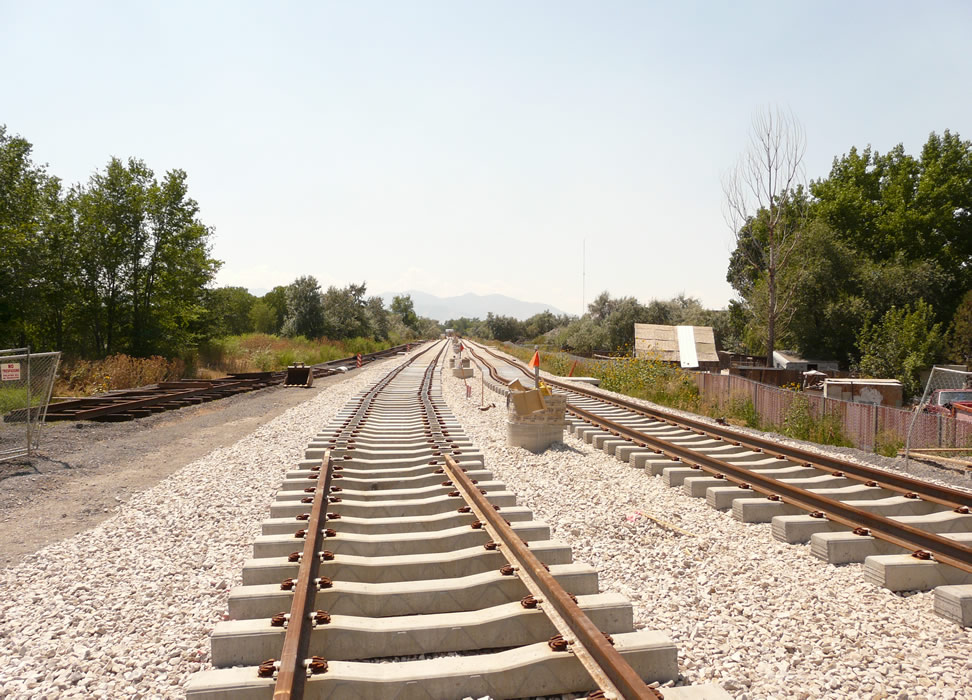 East of the E-Center the West Valley TRAX branch negotiates the Jordan River bottoms. Here is some new rail there. Looking west toward the E-Center. Next