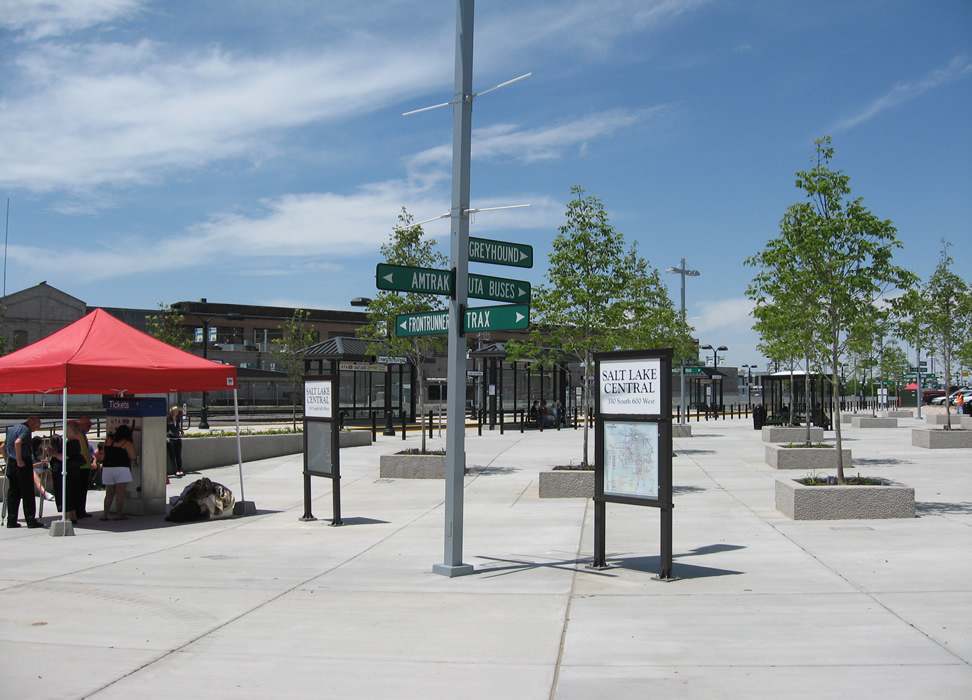 Here is more of the attractive Salt Lake Central Plaza. Note the Frontrunner ticket machine at left. Next