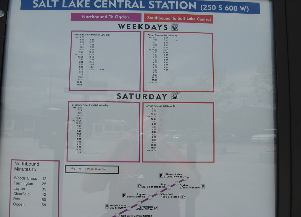 Here is the posted Frontrunner schedule at Salt Lake Central station. Attractive and informative. Return