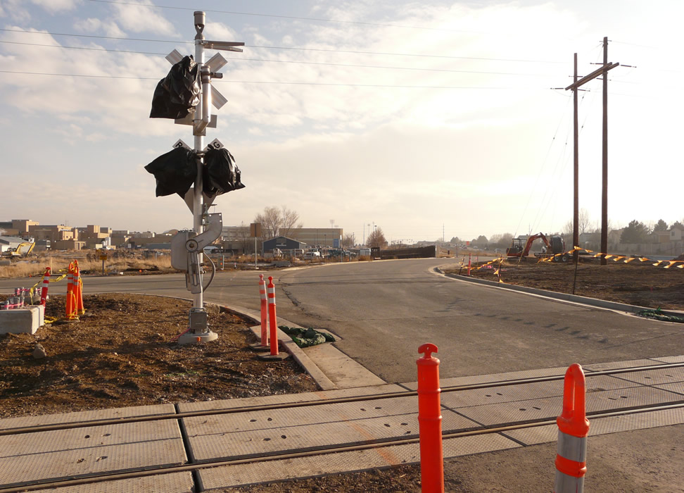 The following photos show problems with the TRAX Mid-Jordan branch construction serving the Jordan Campus of Salt Lake Community College. With our focus on sustainability, we should be looking at how the TRAX Mid-Jordan branch is going to effectively serve the Jordan Campus, which is SLCC's growth campus. The following photo shows the campus being about 1 mile away (light standards) from the Mid-Jordan Branch. As matters stand, TRAX's serving the campus is problematic. A bus connection is going to be difficult because of the intermediate distance (and passengers don't like to change seats for a short distance). The writer thinks the Mid-Jordan branch needs to wye into the campus (railroaders and train buffs will know what I mean, but suffice it to say that I am advocating for TRAX direct service to the campus). The Jordan Campus is SLCC's "growth campus," so service here is critical. The best thing students and faculty alike can do to support sustainability is to get out of their cars and take TRAX. Next
