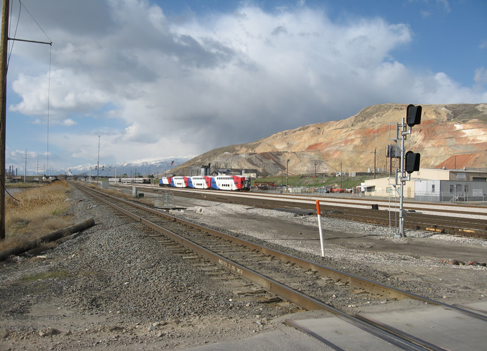 Frontunner has been running a fairly dense schedule of test and instruction trains carrying imaginary passengers. Here is a meet of two such test trains at 1800 North Street in SLC - today - 4/16/2008. First from the north running in push mode. Next