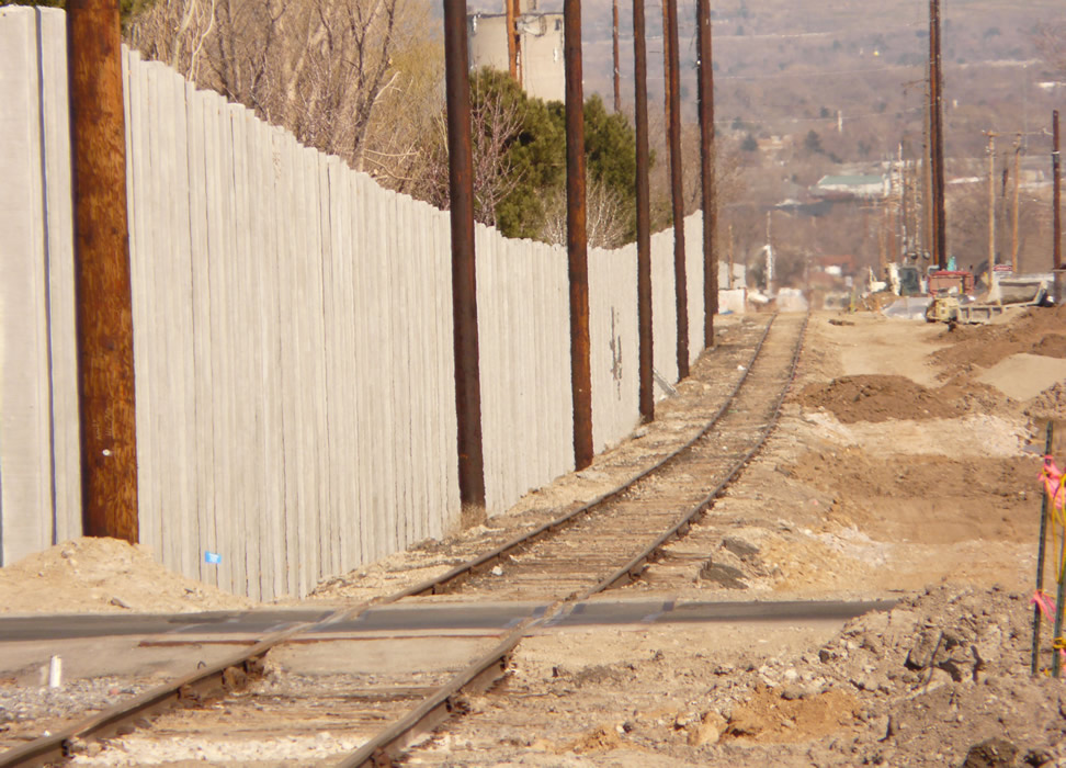 Still farther west, looking east, a completed sound wall.