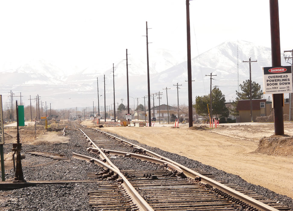 At same site, looking west, new roadbed base at right. Oquirrh Range in distance.