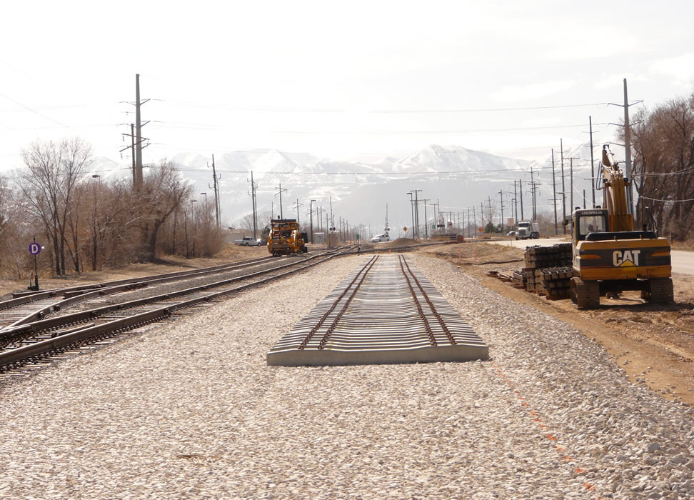 Farther west, new concrete ties. Old D&RGW branch diverges.