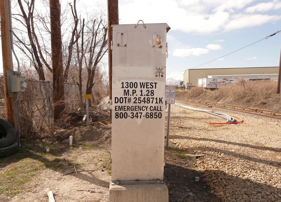 At a crossing farther west, looking west, we see new UTA fibert optic on ground.