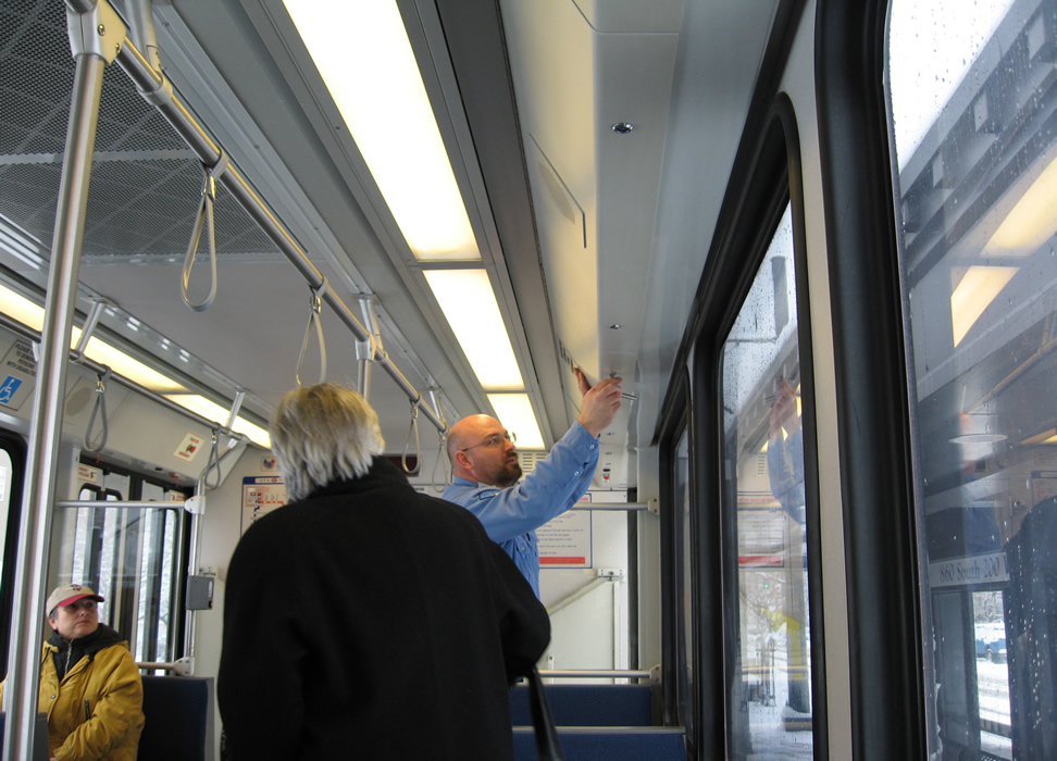 Motorman Tries To Unstick Froze Up Doors (Succeeds, A Recurrent Problem).