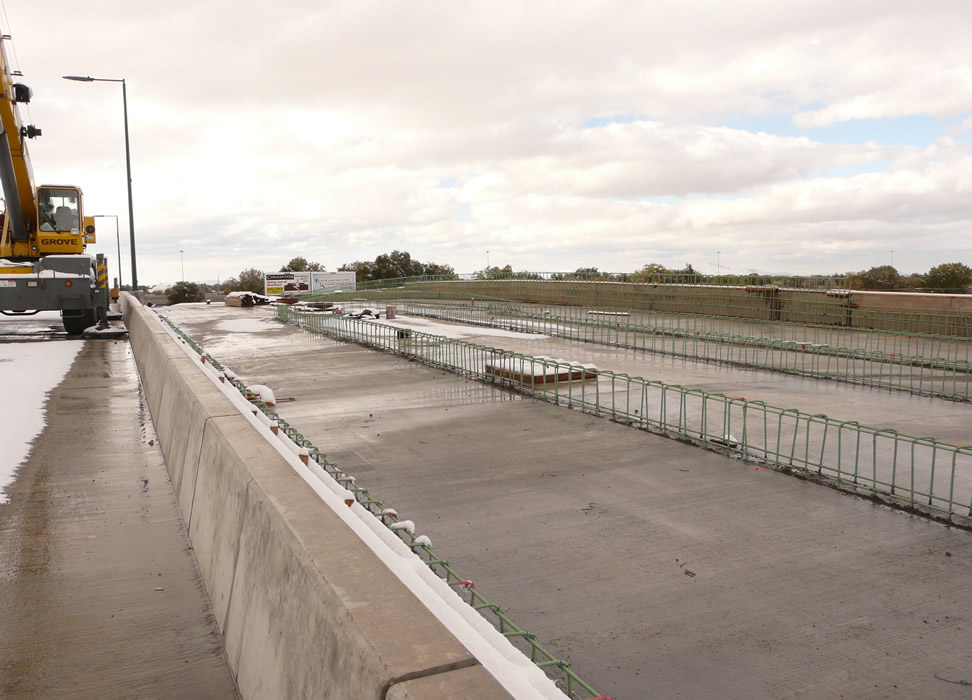 An early snowstorm hit Salt Lake on November 5, 2011. This is how the northwest extension work looked then. We will essentially be proceeding from city center toward the airport. Looking west - the main part of the viaduct seen will be occupied by TRAX. Next