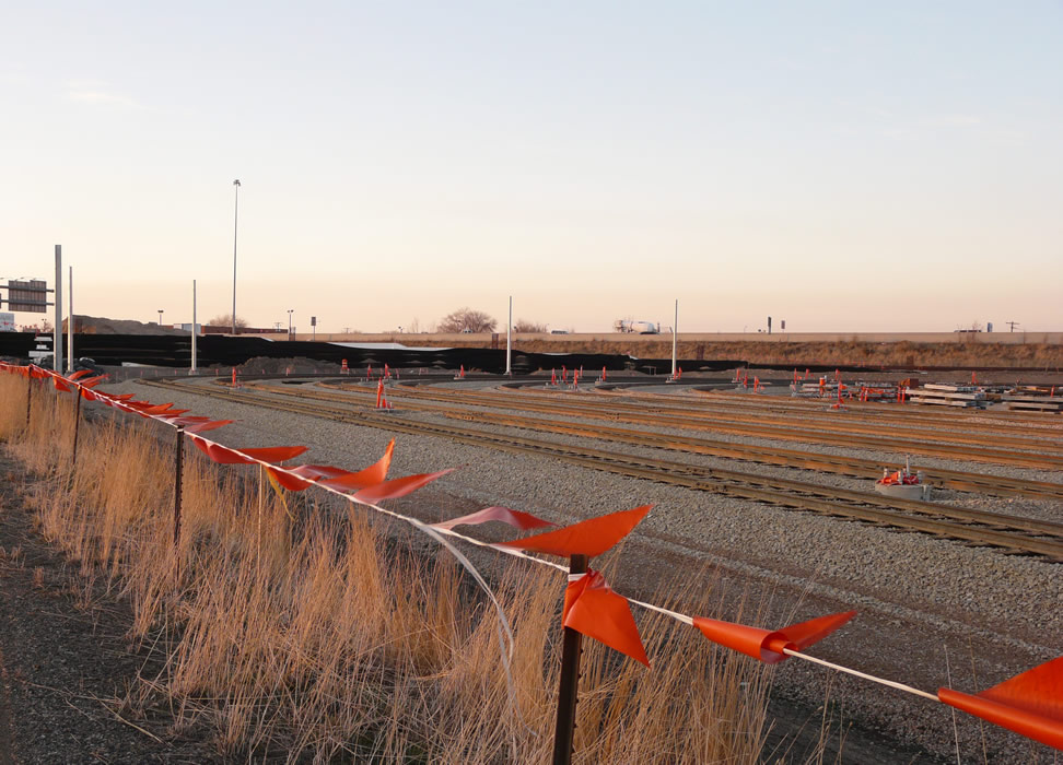 This is the eastern approach to the bridge. Note the Geofoam fill. New holding yard is shown in the foreground. Next