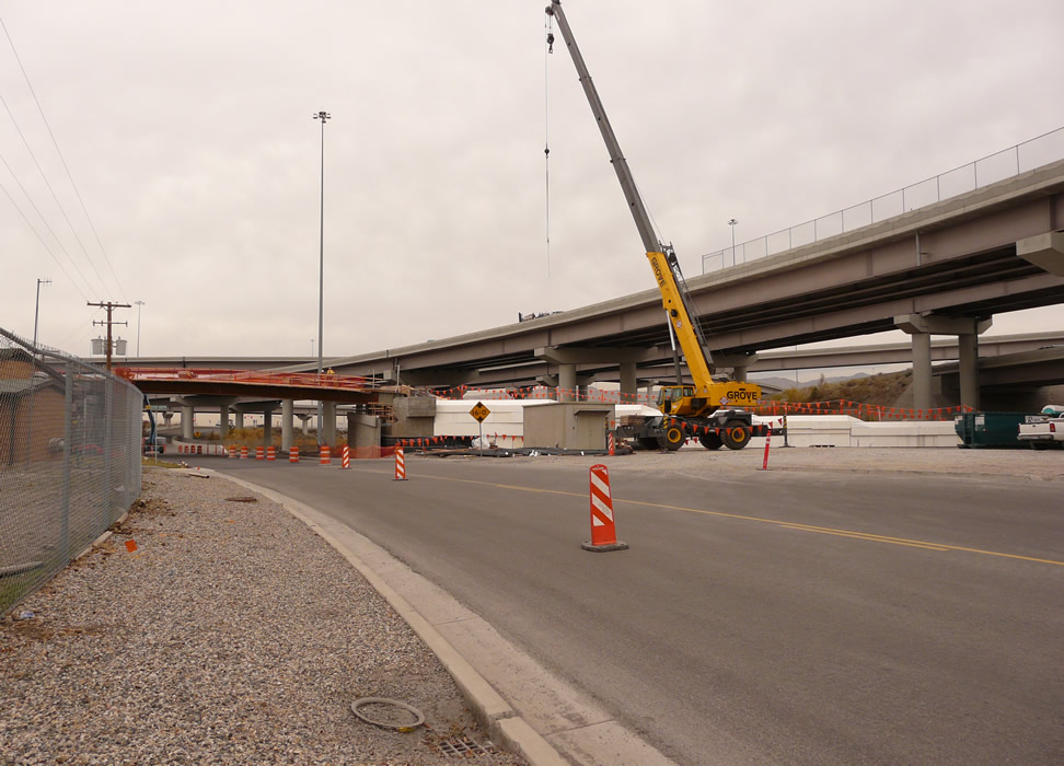 Farther east, bridge construction over Roper Yard. Note the Geofoam roadbed.