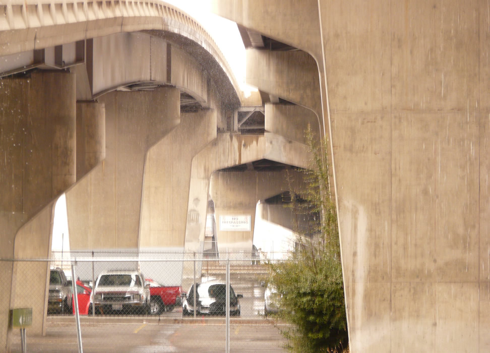 Looking west, this old structure will be torn down for a new combined TRAX/auto overpass and an elevated TRAX station with an elevator down to Frontrunner North. Next