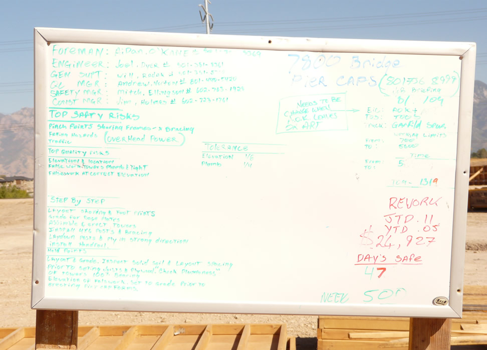 Task board at bridge and retaining wall site.