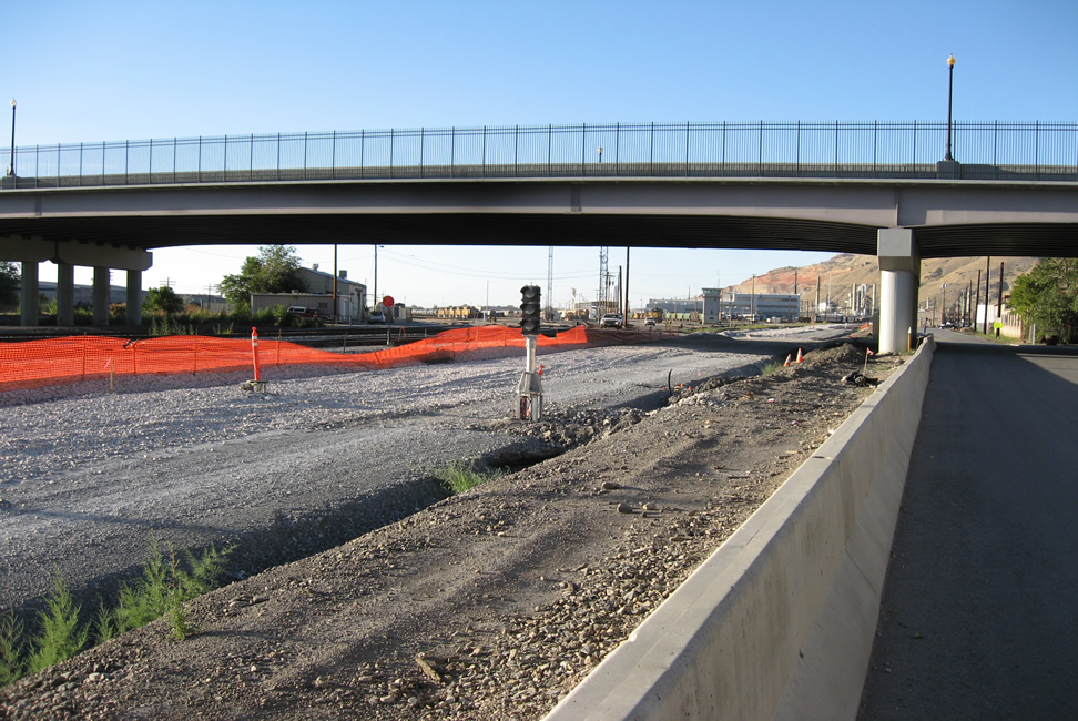 The is the standard style of lineside signal for Frontrunner. Note that Frontrunner also has cab signals. UTA shops are in the distance.