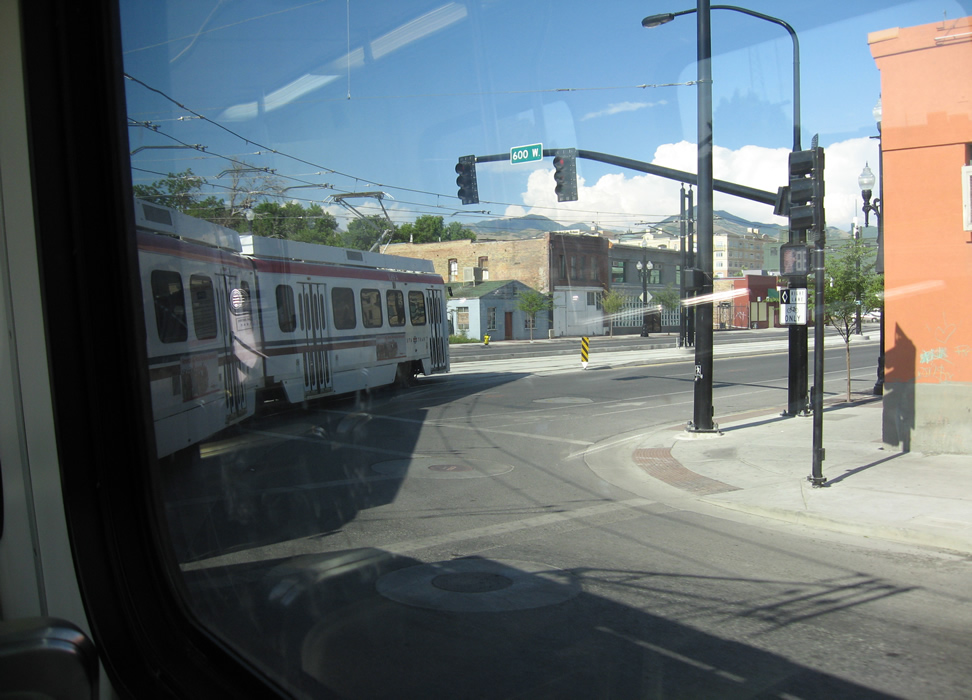 We now turn east onto Second South Street, heading east. This line is part of the TRAX mainline and also is part of the Intermodal Hub extension. Next