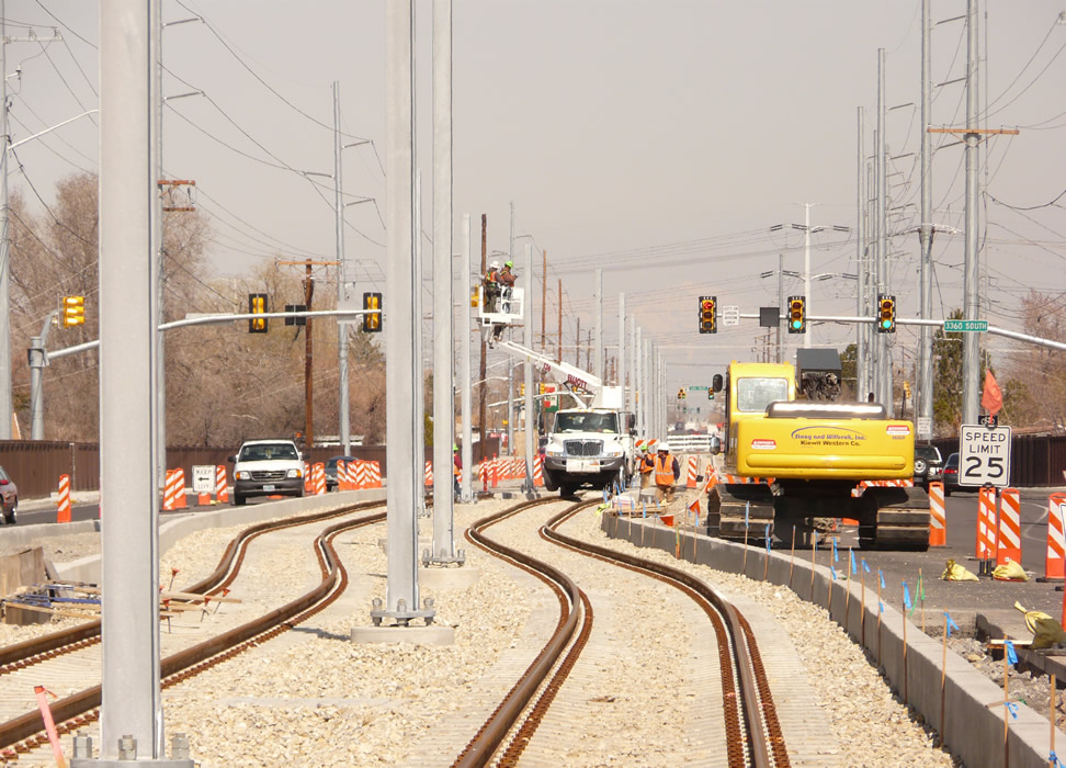 Once again we take a tour of the new West Valley TRAX branch which proceeds west from the TRAX mainstem to one of Utah's largest cities, West Valley. We start on Constitution Blvd in West Valley and proceed east. Here we are looking north on Constitution Blvd. Next