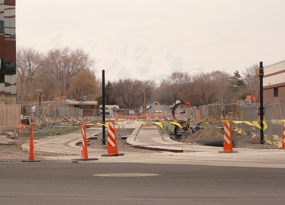 S-curve in West Valley complex. We are looking west. We are making turn onto Constitution Blvd to the right. Next
