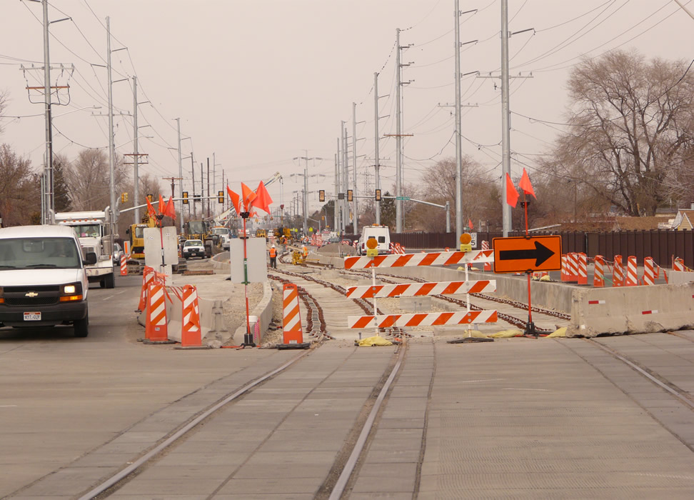 Looking north on Constitution Blvd @ 3500 South. Note that high tension lines on either side of the street are not TRAX. Next