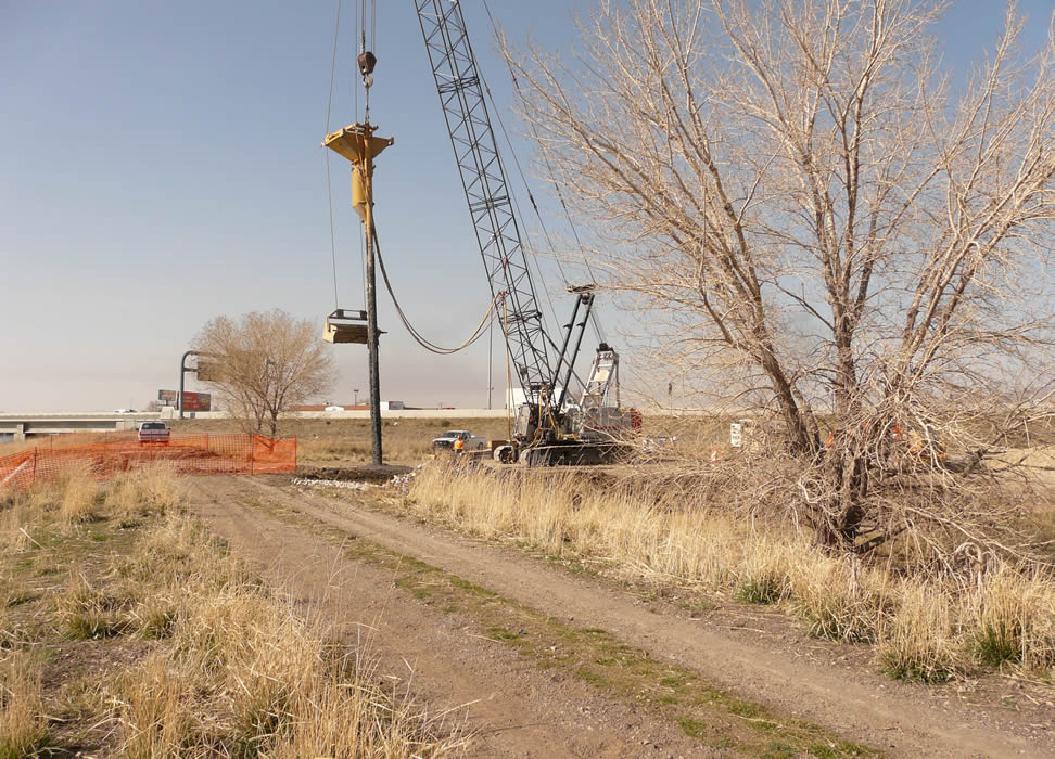 Work is proceeding hot and heavy on the West Valley TRAX branch of UTA. There are three branches off of the TRAX mainstem, each branches to the west. They are from north to south, the Airport Extension (just getting started), the West Valley City branch (shown in this segment), and the Mid-Jordan branch (shown in another section). Shown below is a steam derrick setting pilings for the West Valley branch Jordan River bridge. We are looking north. Next