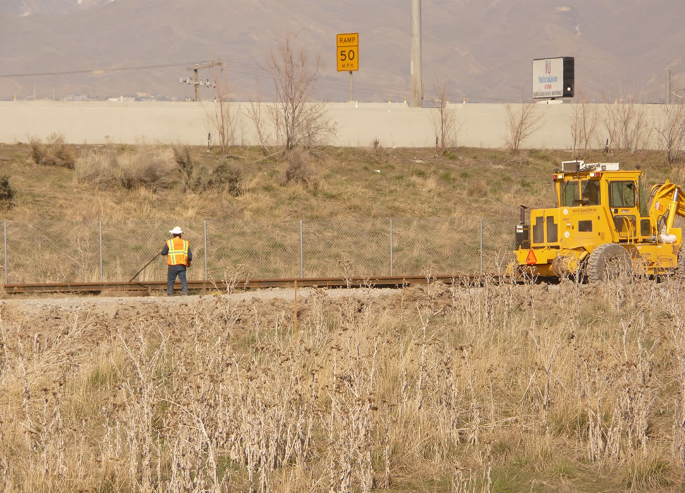 Just east of the steam derrick we see welded rail being placed.