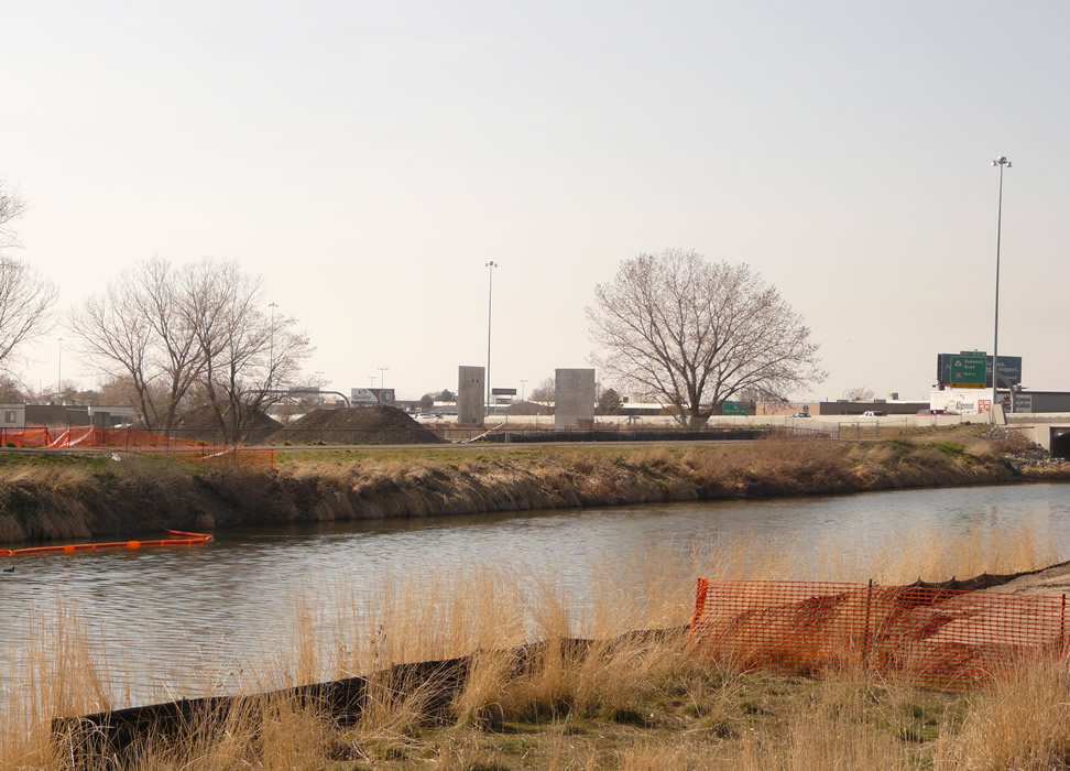 Just west of the steam derrick, on the other side of the Jordan River we see new bridge peers.