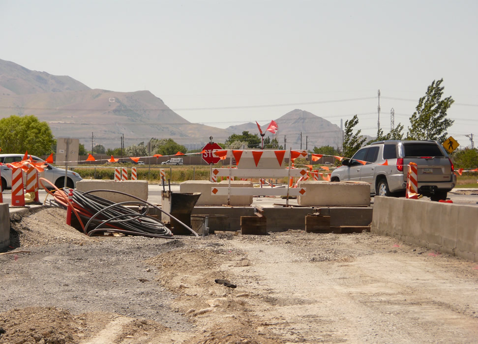 Looking west at previous curve - rail stubs and fiber optic at left.