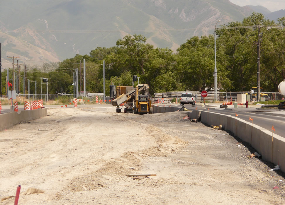 Looking in opposite direction. Stop sign is at Redwood Road. This trench and one in Chesterfield are about the last street restructuring required for the branch. Chesterfield starts on the other side of Redwood Rd. Next