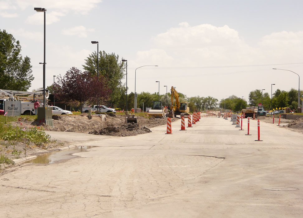 Looking south farther north on the previous Chesterfield street. Behind us the branch ramps up to the new bridge over Jordan River. BTW, a new Jordan River Parkway bike path had to be reenginered with a new bike tunnel under the bridge - I was the first cyclist through it (purely by accident)! Next