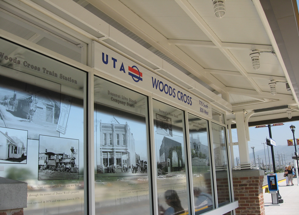 We make it to Woods Cross station, which is tastefully adorned, as are all Frontrunner/TRAX stations. Next