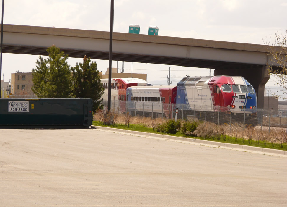 Looking south. Frontrunner is going south (away from camera). Elevator will be about where lead car is. Next