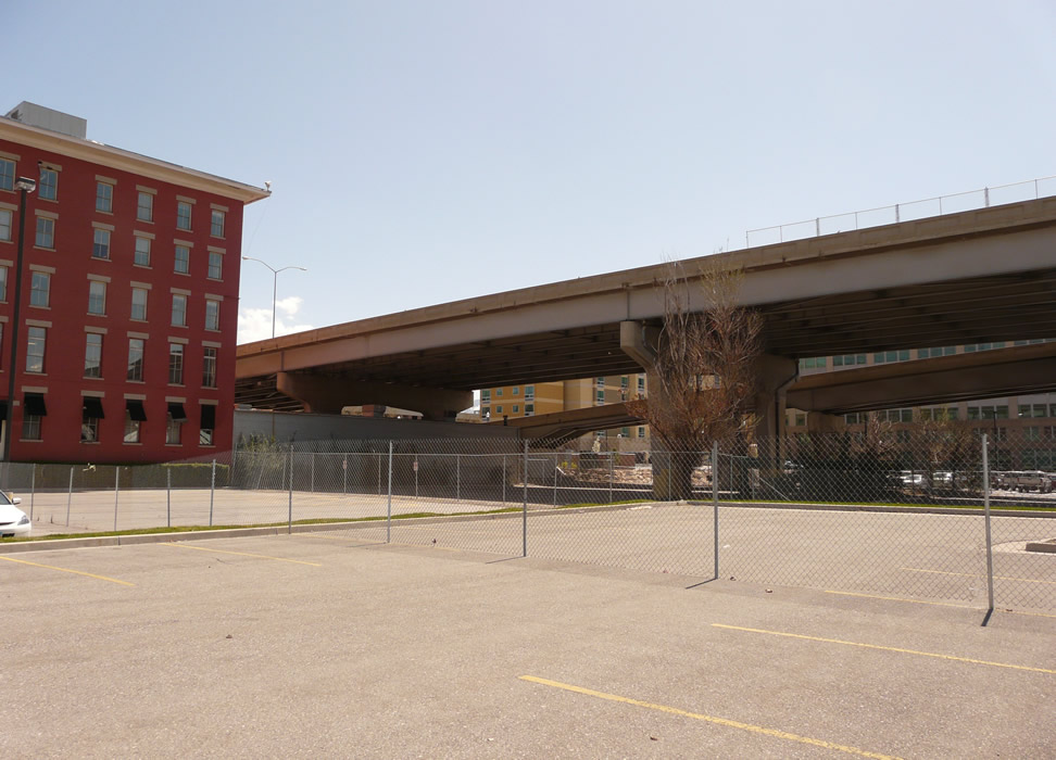 Looking southeast. New overpass will follow the roughtly the current off-ramp to 400 West Street. Next