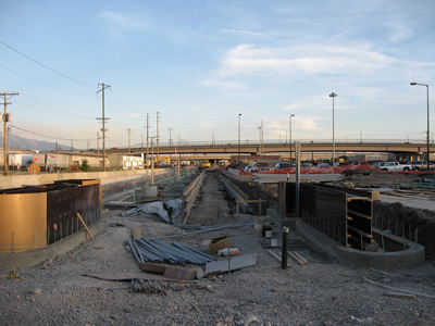 This is the new downtown end point of TRAX light rail. The intermodal hub is to the right, and the Amshack is the squat tan building in the distance. |