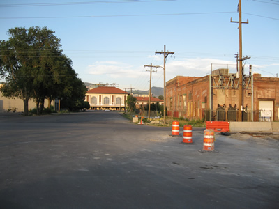 This is just to the left of the previous picture, facing east. In the distance is the old Rio Grande station. We are facing its back. It is now completely land-locked, but its classic Rio Grande sign on the roof is lit up magnificently every night. The State of Utah, which owns the station, tried to take the sign down, but the Rio Grande Cafe on the lower floor insisted that their lease included the presence of the sign, so we still have it. Good for them! |